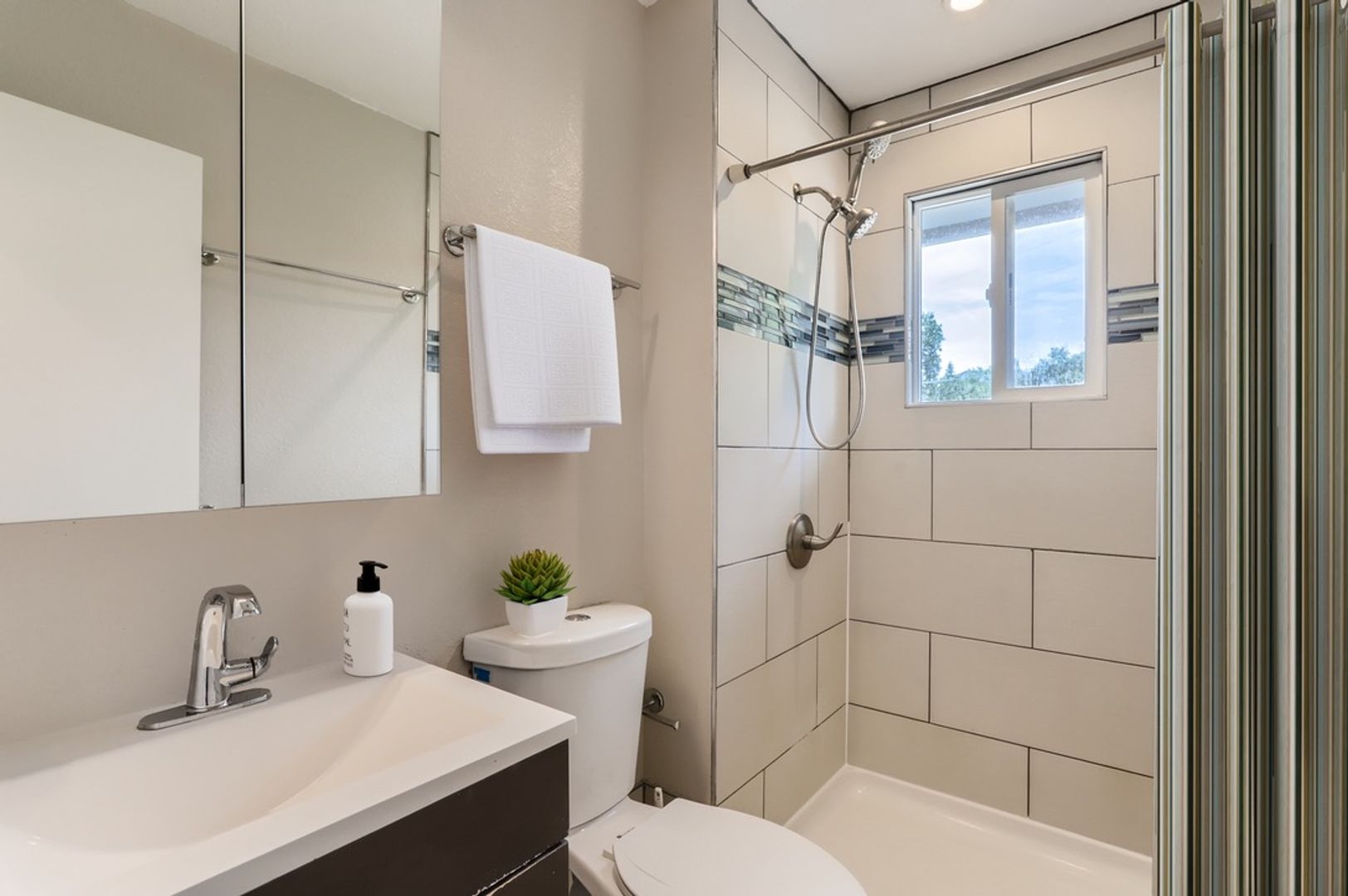 Laundry is a breeze with a quiet front-load washer and dryer conveniently located near the bedrooms.