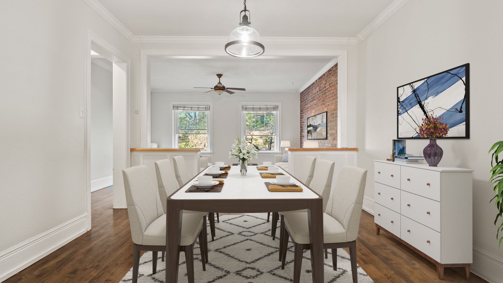 This darling Capitol Hill condo is your perfect home for downtown living. Located just one mile from Cheeseman Park, this cheerful 2 bedroom, 1 bath home is big on character. Lovely brick accent wall in the living room and handsome hardwood floors give this residence the flair it commands. You'll adore the new oversized windows, high ceilings and the foyer that leads to the living area, accented with a delightful ceiling fan. An intimate dining area lies between the living area and kitchen, perfect for get-togethers. The hip remodeled kitchen is a real eye-catcher with retro black and white tile, bright cabinets and stainless steel appliances. Both bedrooms have hardwood floors and large windows, allowing for tons of natural light. Off street parking is available for a fee but having a car isn't necessary. There is a parking lot next door for a small monthly fee. Don't miss this opportunity. The unit and location are hard to beat!